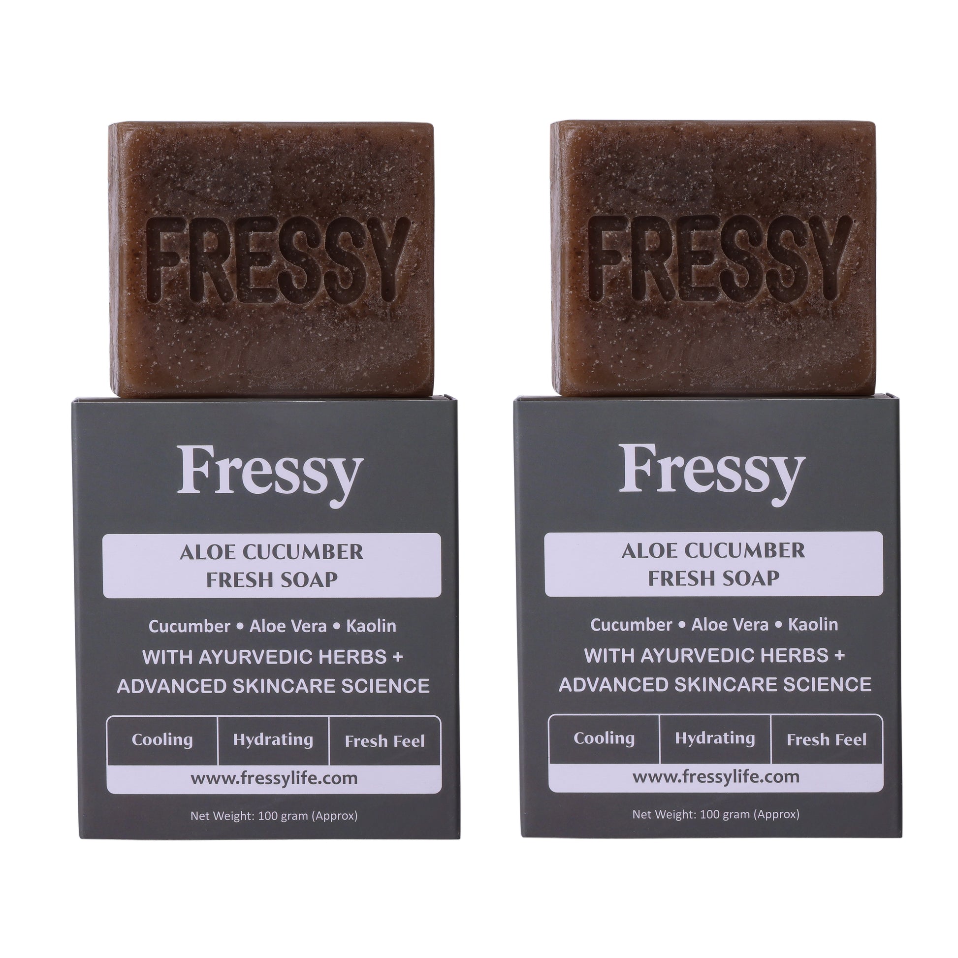Fressy Aloe Cucumber Fresh Soap – Herbal Cooling & Hydrating Bathing Bar with Aloe Vera, Cucumber & Kaolin | Fresh Feel | 100g