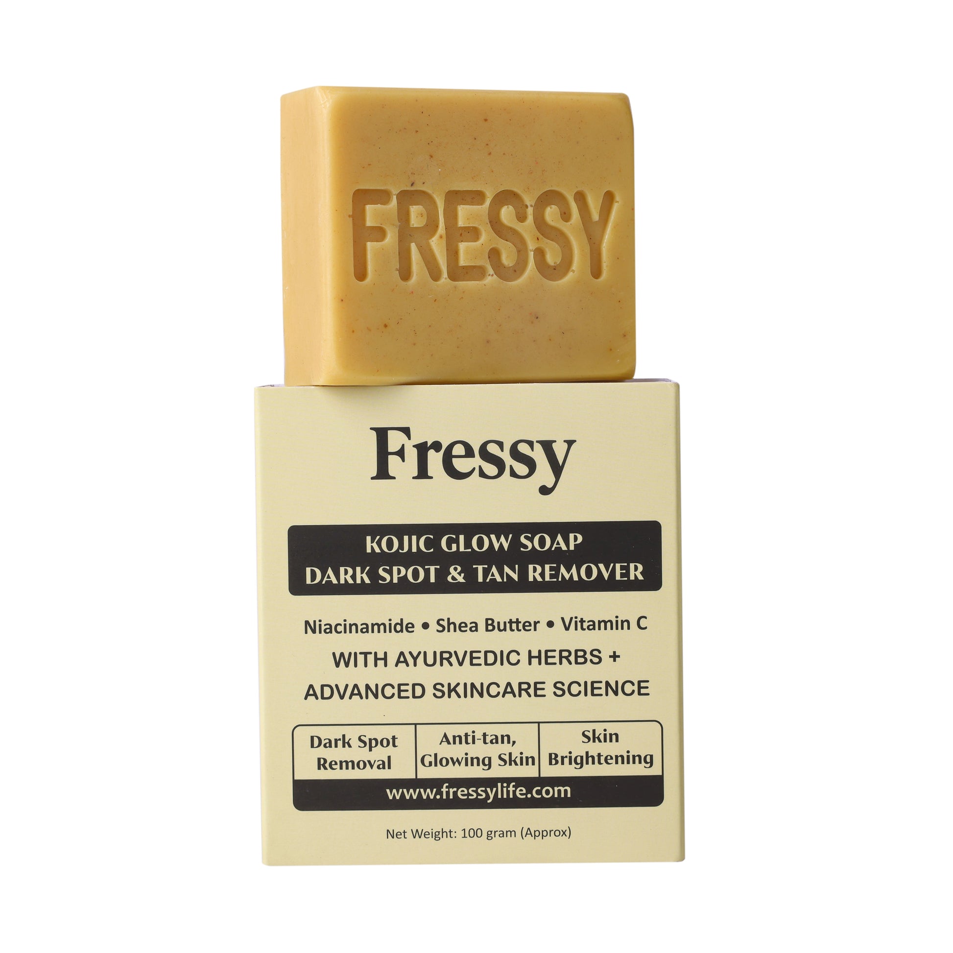 Fressy Kojic Glow Soap – Dark Spot & Tan Remover | Kojic Acid, Niacinamide, Vitamin C & Shea Butter | Skin Brightening & Anti-Tan Soap | 100g