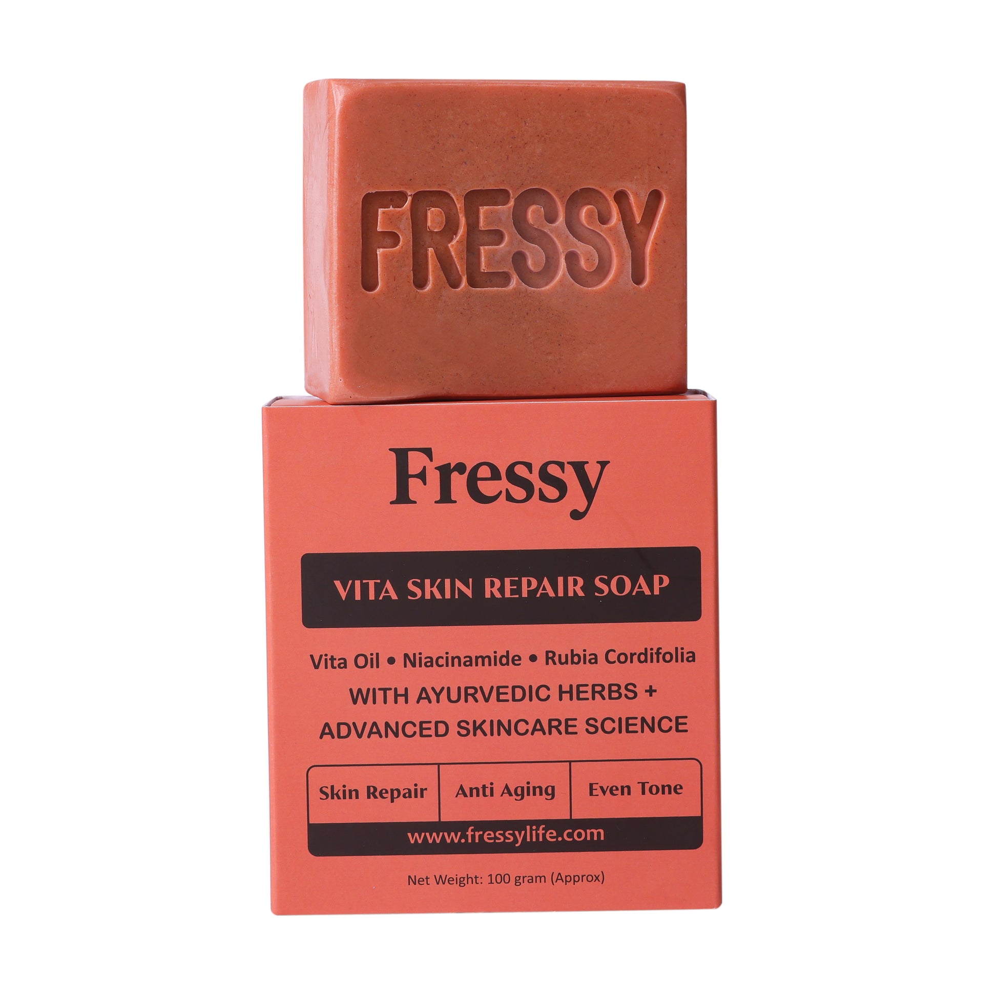 Fressy Vita Skin Repair Soap – Vita Oil, Niacinamide & Rubia Cordifolia | Skin Repair, Anti-Aging & Even Tone Herbal Bathing Bar | 100g